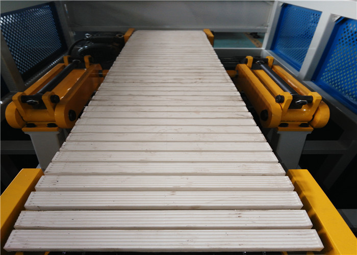 Le flux de procédé de cette ligne est de poudre de PVC + additif mixeuralimentateur de matériau extrudeuse à deux vis moule et calibrateur table de formage sous vide machine de débranchage machine de découpe étagère de décharge.