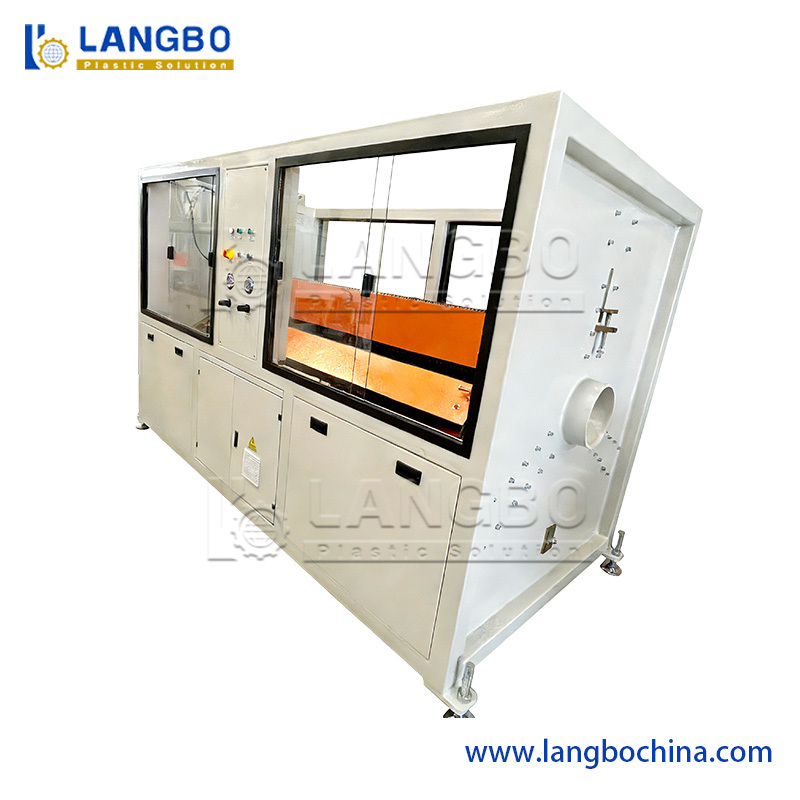 Dispose d'une section de refroidissement de 6 mètres avec plusieurs buses d'eau pour un contrôle optimal de la température. Une installation de précision garantit une efficacité de refroidissement maximale, en durcissant efficacement les tuyaux en PVC lorsqu'ils traversent le bain-marie en configuration double brin.