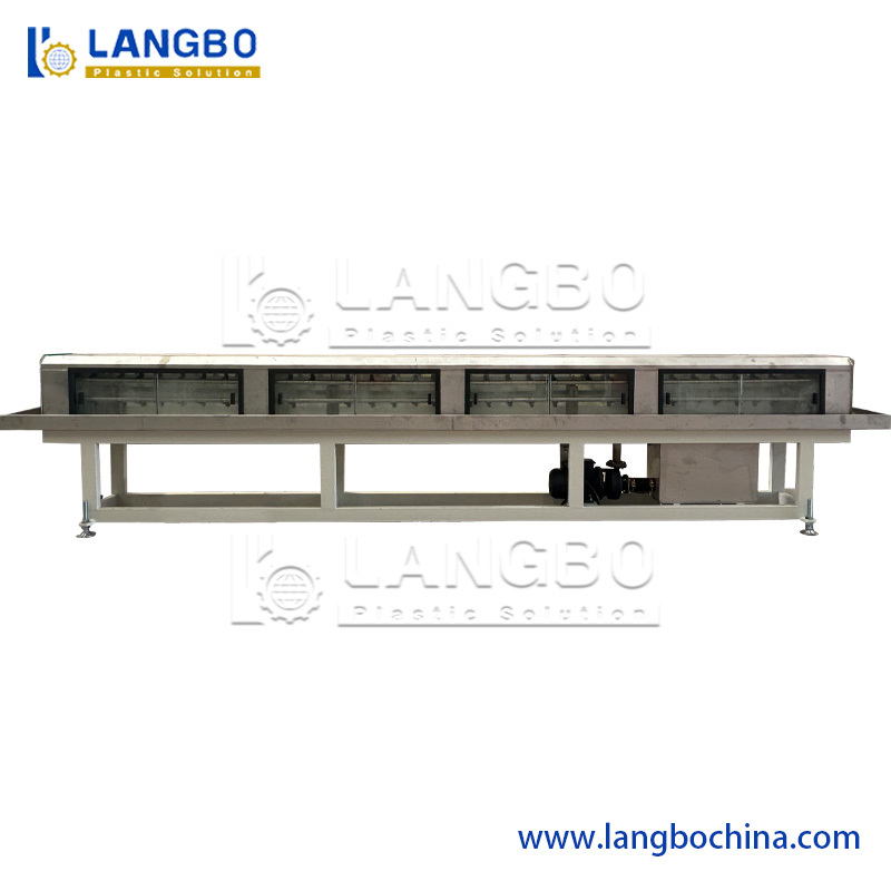 Le bain de calibrage sous vide adopte une structure à deux chambres : les parties de calibrage sous vide et de refroidissement. Le bain sous vide et le bain de refroidissement par pulvérisation sont en acier inoxydable 304. L'excellent système de vide assure un calibrage précis des tuyaux. Nous avons allongé le bain sous vide et de refroidissement à 8 m. Avec un processus de refroidissement beaucoup plus long, le tuyau CPVC peut être bien refroidi et avoir une meilleure surface.