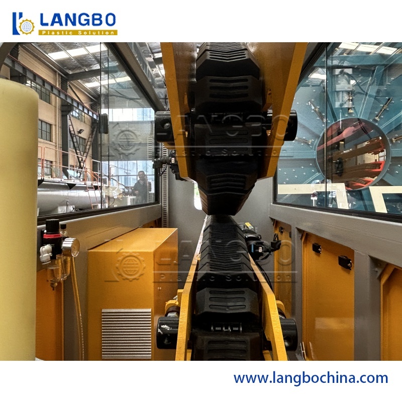 Équipée de trois courroies chenilles, la machine de tirage assure un mouvement stable des tuyaux produits. En ajustant le contrôle général, elle peut être personnalisée en modes de tirage sur mesure pour répondre aux exigences spécifiques de la production.