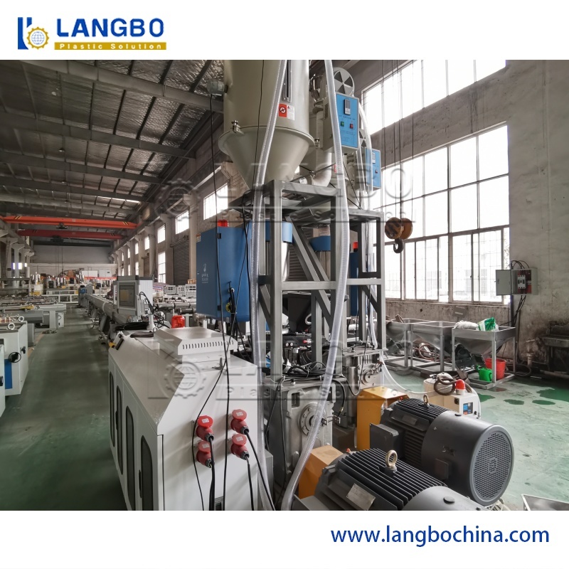 Les matières premières (granulés de PPR/PVC, additifs) sont automatiquement introduites dans la trémie et mélangées uniformément.