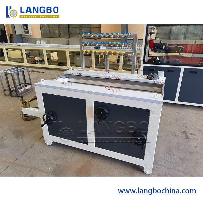 This PVC profile extrusion line adopts conical twin screw extruder, which is suitable for both PVC powder and PVC granules. It has degassing system to ensure the excellent material plasticization. The high speed mould is available, and it can largely increase the productivity.