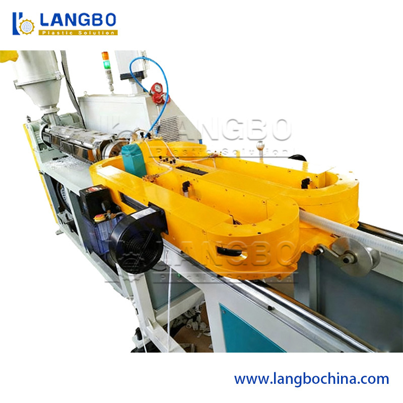 Les granulés de plastique sont introduits dans la trémie et fondus dans l'extrudeuse à température et pression contrôlées.Le matériau fondu est ensuite façonné dans le moule de corrugation par le vide ou la formation sous pressionLes tubes sont ensuite refroidis à l'eau pour stabiliser leur forme. Les tubes refroidis sont automatiquement coupés à la longueur requise et collectés par le bobineur pour inspection et emballage.
