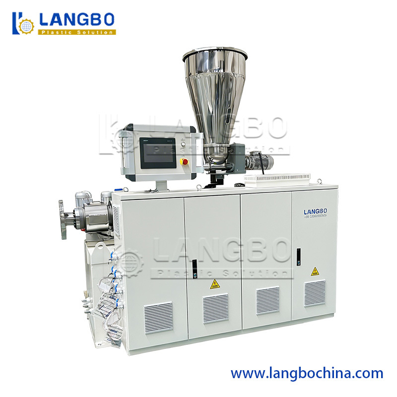 • Extrudeuse à double vis conique compatible à la fois avec du PVC en poudre et des granulés