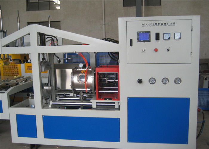 La machine belling est combinée avec la production d'extrusion des tuyaux pour fabriquer l'extrémité de prise des tuyaux avec le type de « U », de « R » et de rectangulaire. Le traitement belling devrait être fait à l'intérieur de la salle belling avec le vide formant à l'intérieur du noyau du refroidissement belling de moule et par l'eau en dehors du tuyau afin d'obtenir la prise précise.